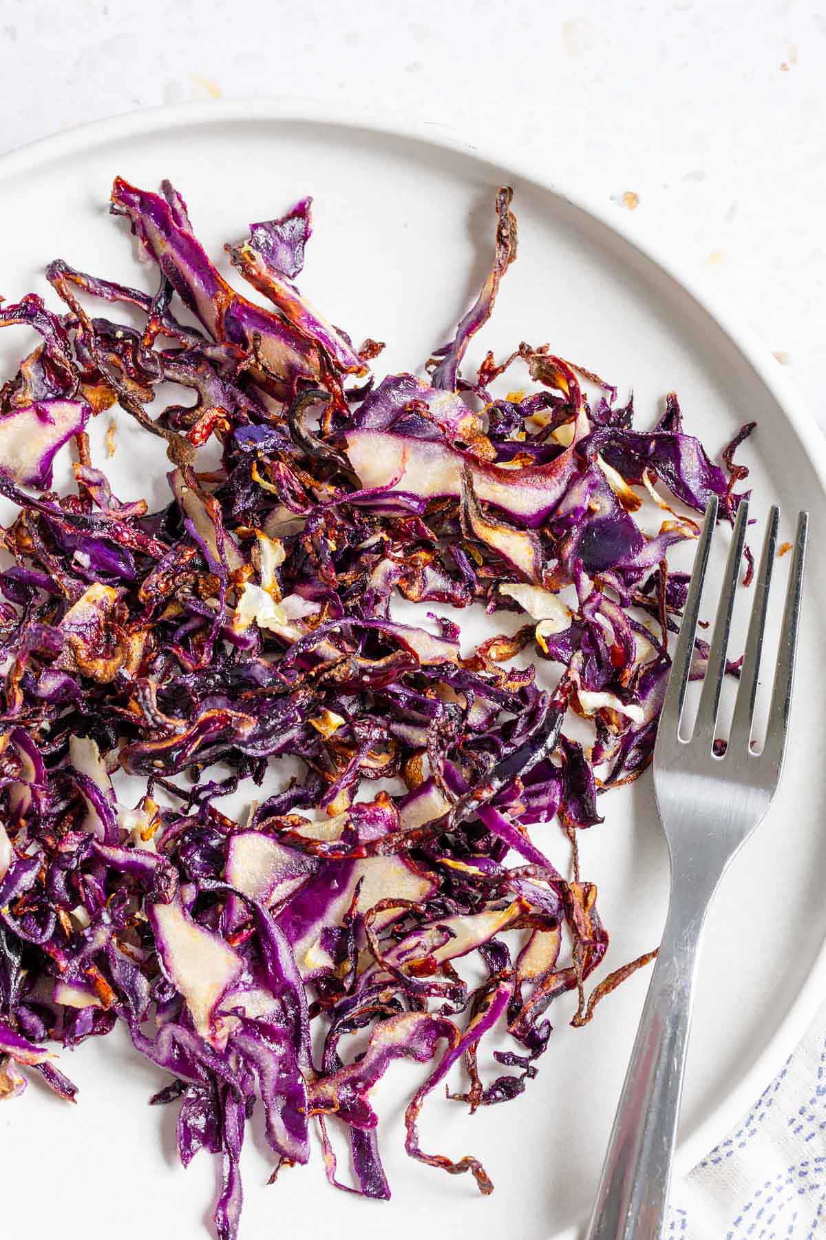 I used to make oven roasted red cabbage, but my new love is cooking it in the air fryer. So incredibly easy, and no preheating needed.
