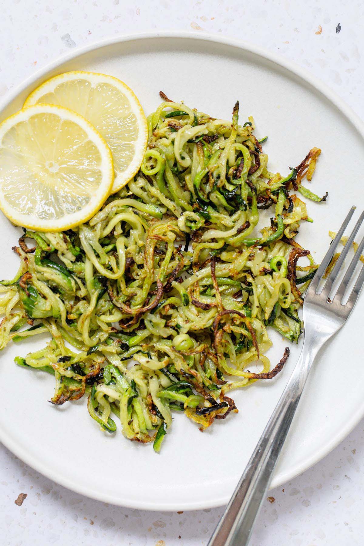 - These air fried zoodles are delicious as a side dish, but I love them with chicken and parmesan.