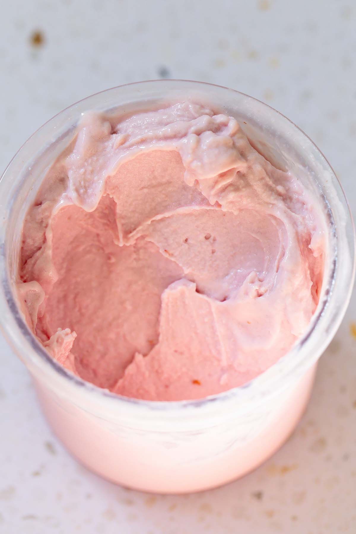 - Highly recommend running warm/hot water along the outside of your Creami container before processing. This will allow the outer layer to thaw and get properly incorporated when the ice cream spins.