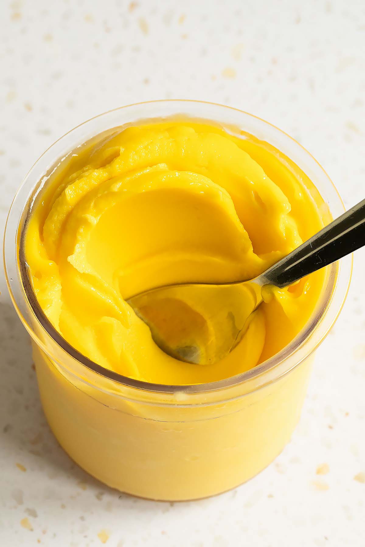 - If you want a soft mango sorbet that's still scoopable, respin it a few times before enjoying (I personally like to do 2-3 respins for my mango sorbet, but it may depend on how your freezer settings).